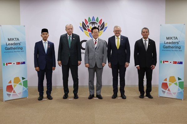 Cumhurbaşkanı Erdoğan, Güney Afrika Cumhuriyeti'nin Johannesburg kentinde düzenlenen G20 Liderler Zirvesi kapsamında; Türkiye, Meksika, Endonezya, Güney Kore ve Avustralya’da oluşan gayriresmi istişare ve eş güdüm platformu MIKTA’nın liderleriyle bir araya geldi.