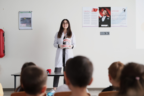 “Özellikle çocuklarda süt dişlerinin dökülme döneminde bir korku oluşabiliyor. Bu nedenle çocukları bilgilendirdik ve ağız muayenesi yaptık. Ağız sağlığı açısından paketli gıdalardan uzak durmaları gerektiğini anlattık. Süt dişi zannettikleri 6 yaşında çıkan dişlerine daha iyi bakmaları gerektiğini vurguladık. Ayrıca dişlerin nasıl doğru fırçalanması gerektiği ve günde kaç kez fırçalanması gerektiği konusunda kapsamlı bilgiler verdim.”